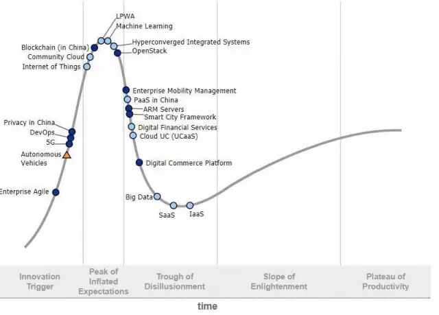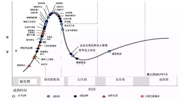 Gartner根据分析预测来推论各种新科技的成熟演变速度及要达到成熟所需的时间