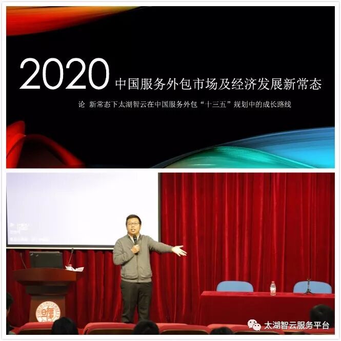 接着,中元鼎晖董事长王健就“2020中国服务外包市场及经济发展新常态”发表了主题演讲,并详细介绍了新常态下太湖智云在中国服务外包“十三五”规划中的成长路线,为大家带来很多干货。
